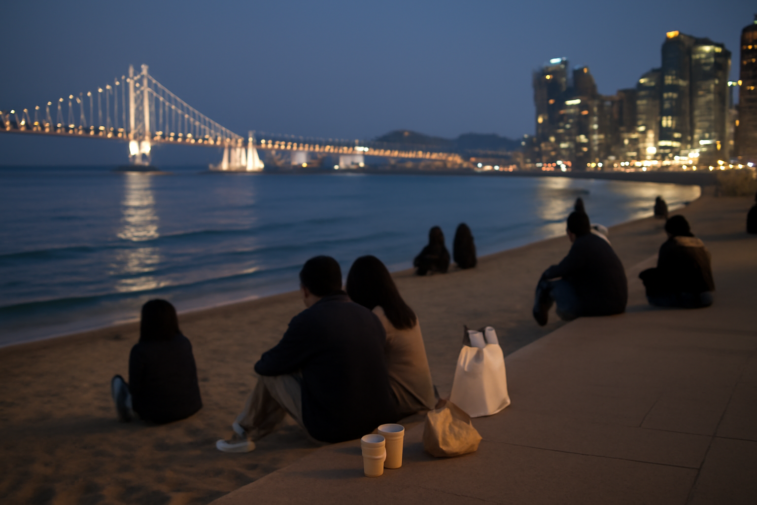 When Busan turns on its evening mood, Gwangalli is where you feel it. The Gwangan Bridge lights up, the beach stays active after dark, and dinner options are endless.